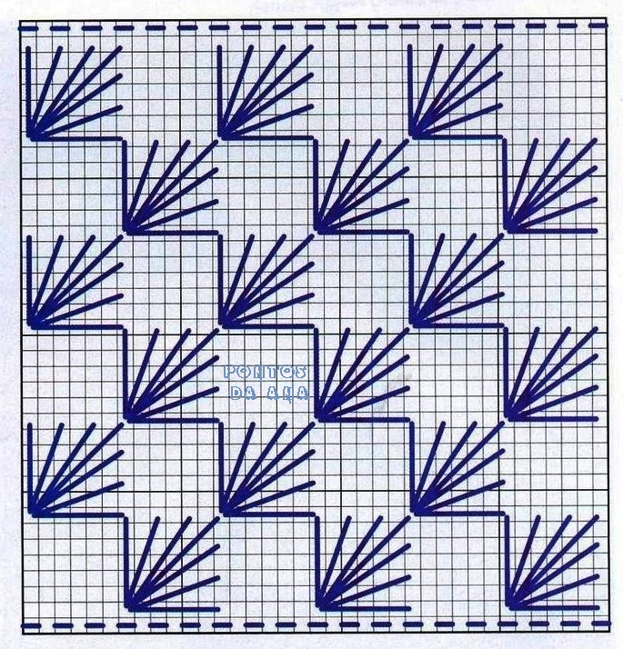 Usa-se pontos altos duplos, pontos baixos e correntinhas.